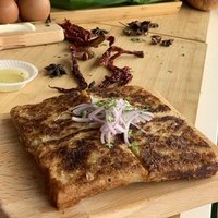 Murtabak Singapore Beef / Chicken, thin dough packet stuffed with a combination of 100% minced beef / chicken, special mixed spices, onion, egg and fried in oil to a golden crisp.
